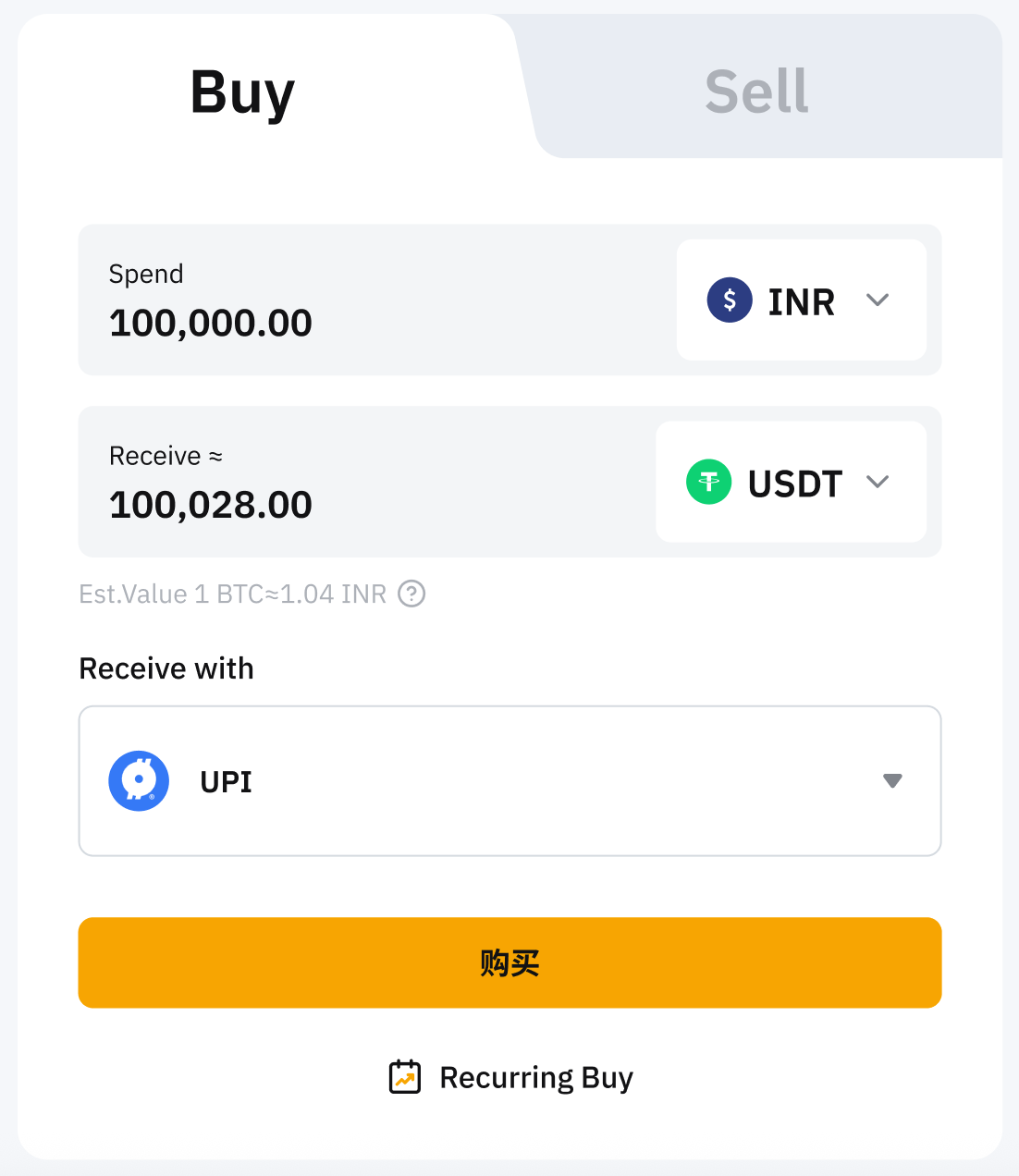 Step 1: Click on Buy Crypto → One-Click Buy at the top left corner of the navigation bar to enter the Buy function page.