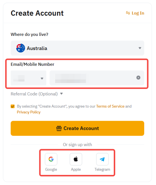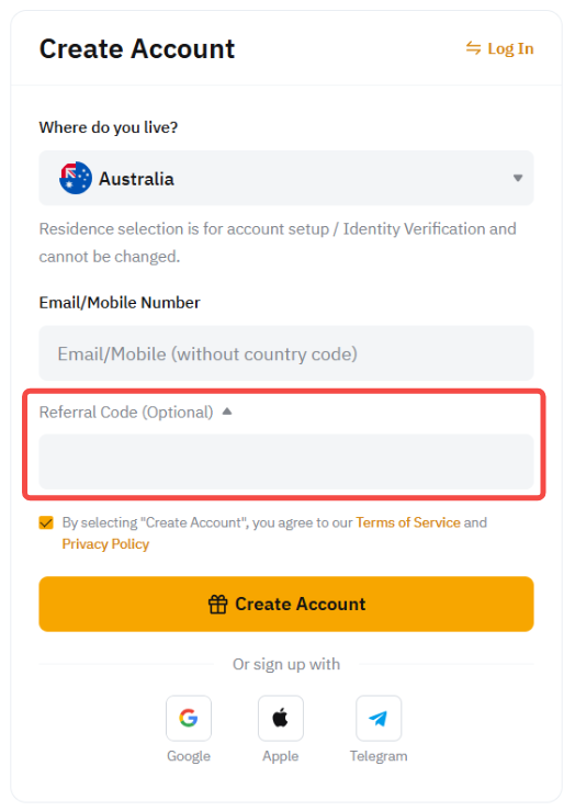 You can also tap on the Sign Up With buttons to easily create your Bybit account using: