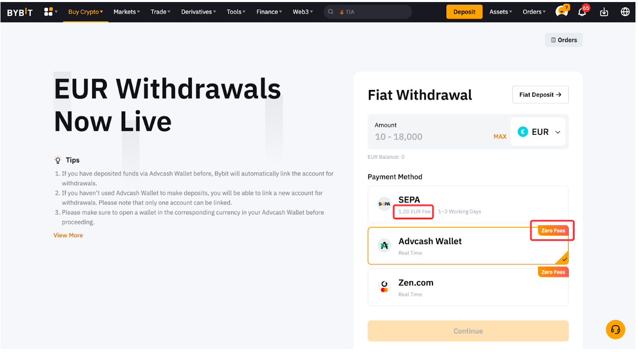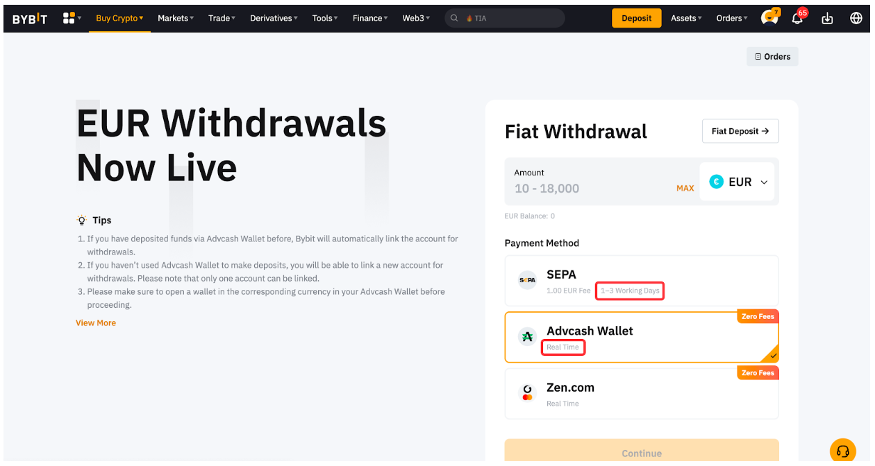 El tiempo de procesamiento puede variar en función de la moneda fiat y del método de pago seleccionado. Puede encontrar el tiempo de procesamiento estimado para cada divisa yendo a la página de retiro de fondos fiduciarios y seleccionando la divisa de su elección. Para más información, lea también los consejos que aparecen junto a la ventana de pedido.