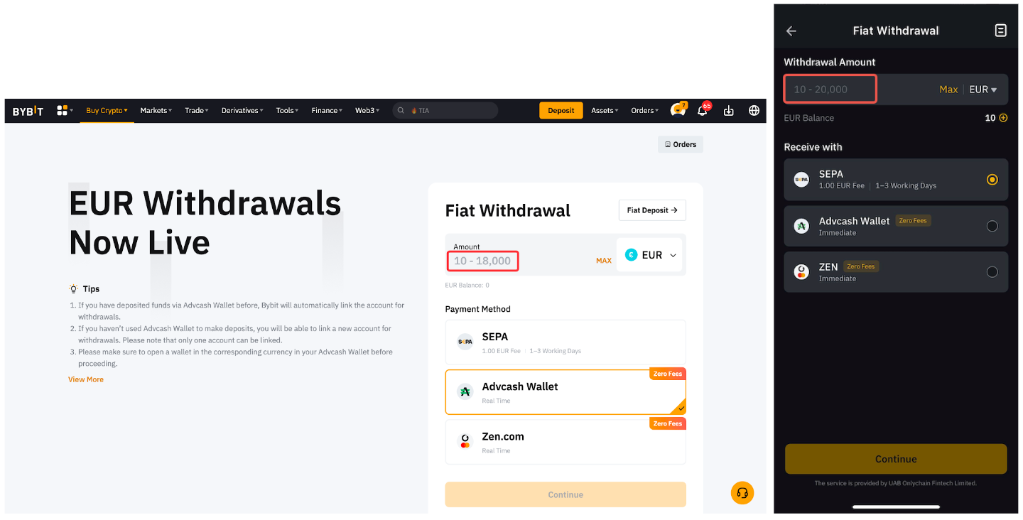 Sólo una cantidad seleccionada de monedas fiat están disponibles para retiros en Bybit. Podrá ver las monedas fiat admitidas para el retiro fiat yendo a la página de su cuenta de financiación y comprobando las opciones de retiros fiat. Para obtener más información, consulte aquí.