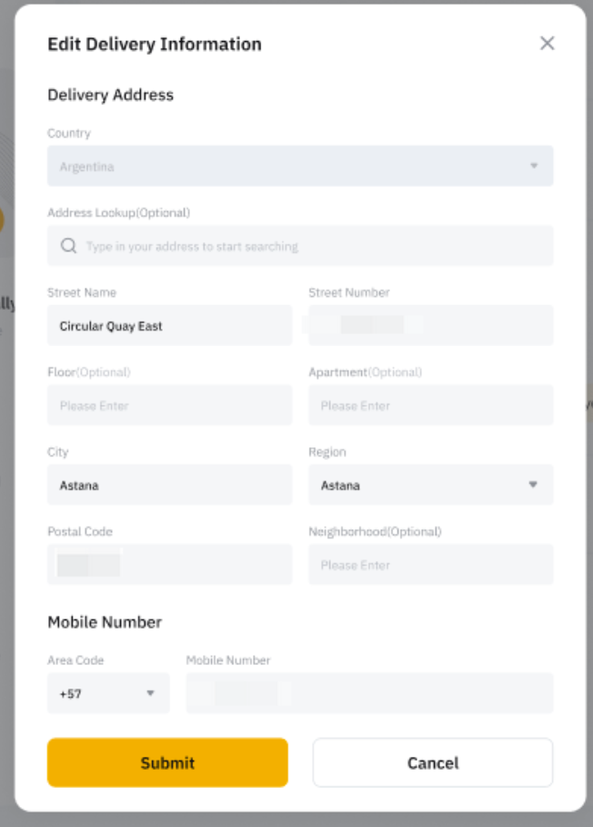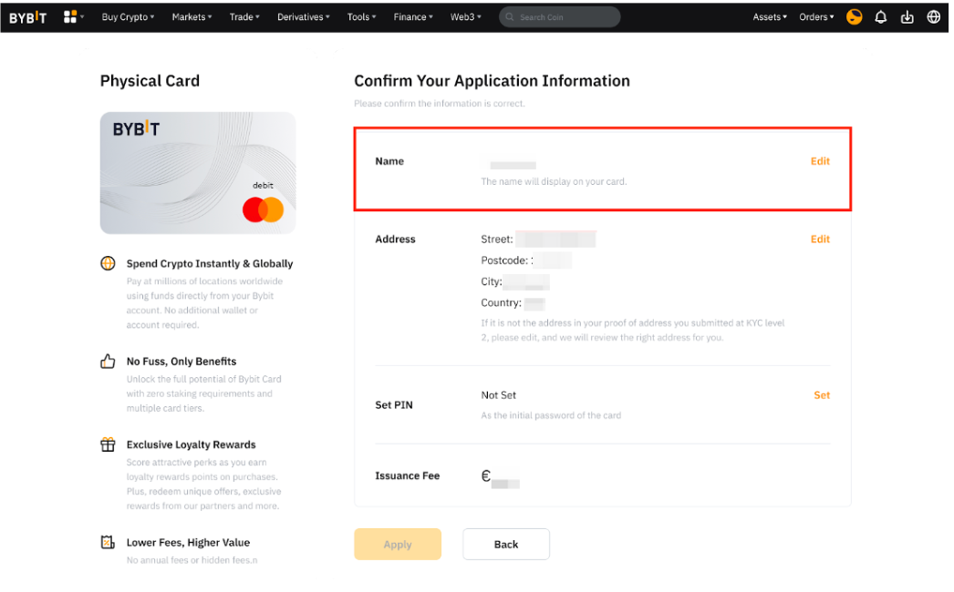Paso 3: Edita tu dirección de envío. La dirección de envío debe ser la misma que la dirección enviada para la verificación de dirección de tu Bybit Card virtual.