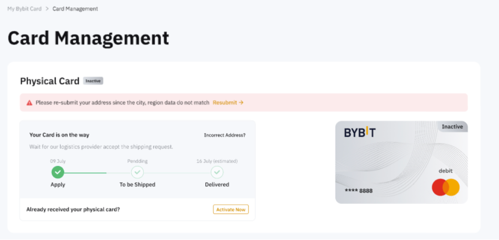 — Para obtener más información sobre las descripciones del estado de entrega de la tarjeta, consulta las preguntas frecuentes — Consultas generales de la Bybit Card (Argentina).