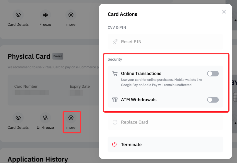 Vai para a página Gestão de cartões. Clica em Congelar e em Confirmar para desativar temporariamente o teu Cartão Bybit quando não o estiveres a utilizar. Congelar o teu cartão irá suspender temporariamente todas as transações para proteger a tua conta de atividades não autorizadas.