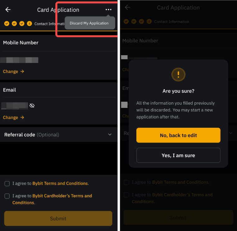 您可以在此提交请求,请求客服团队协助,取消 Bybit Card 申请。