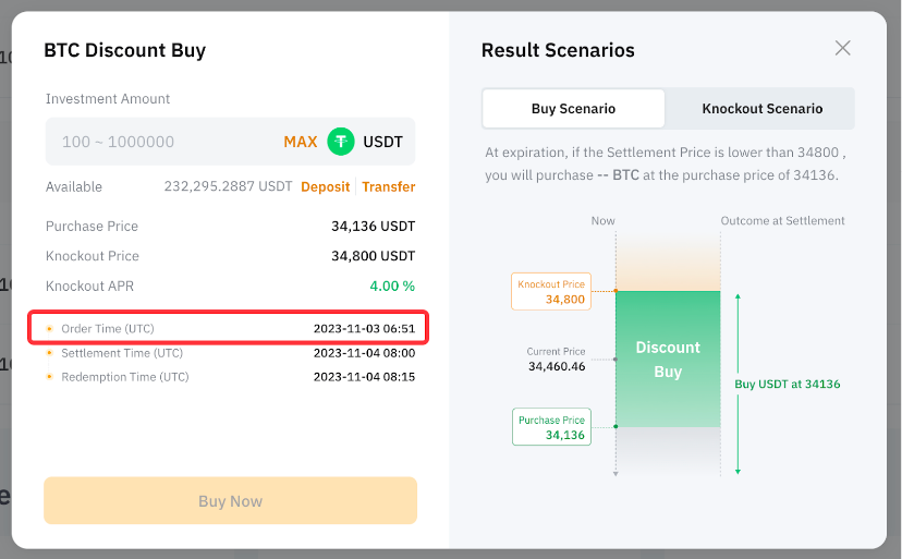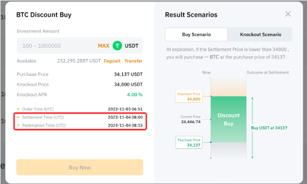 • 如选择折价买币,即使结算价格高于购买价格,用户也能以购买价格买币。