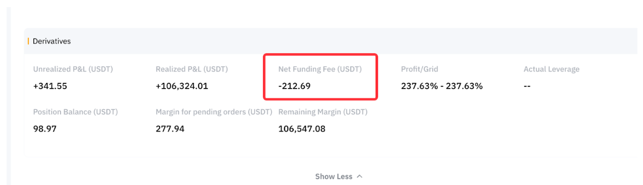 资金费用为负数表示您正在从上一个资金间隔收到(赚取)资金费用。相反,如果您看到正数,则表示您正在支付资金费用,这会导致您的机器人内的剩余保证金减少。