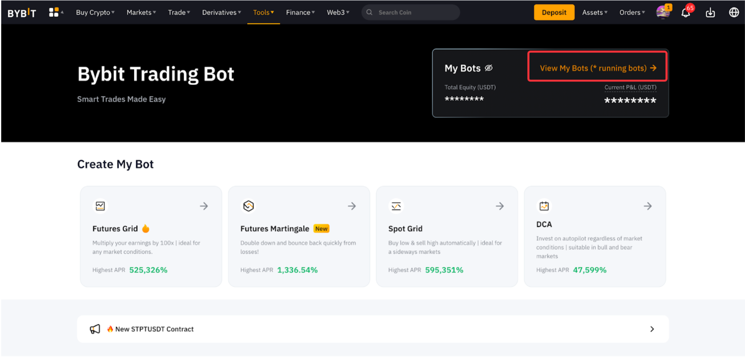 Bybit现货网格机器人支援多种币种,例如USDT、USDC、BTC、DAI。