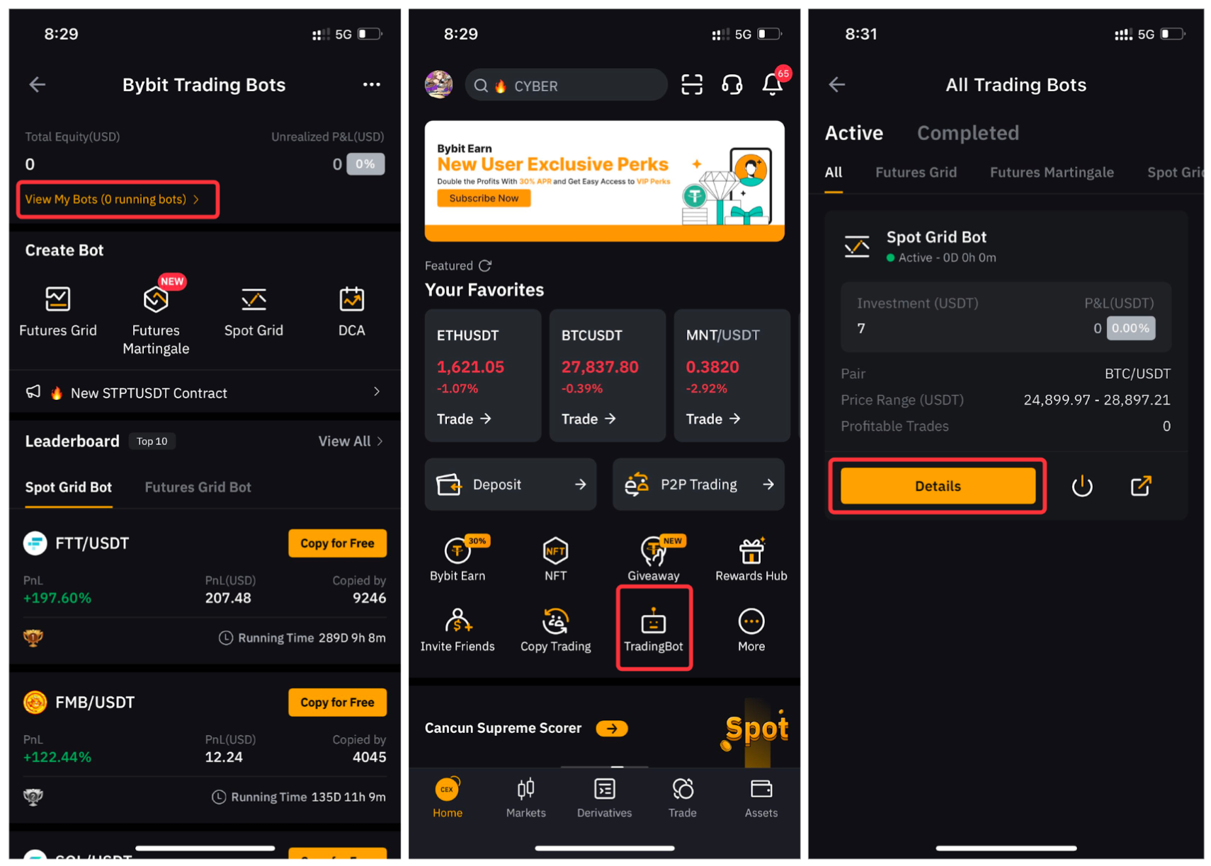 在Bybit App上,进入交易机器人→查看我的机器人→详细资讯以查看机器人的详细资讯。