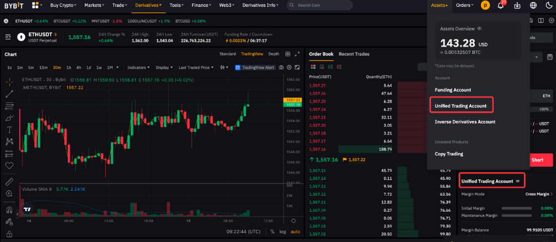 使用 UTA,您将在资产页面上看到统一交易账户类型。 要交易现货、现货保证金、杠杆代币、USDT 永续、USDC 永续与交割、反向永续与交割以及 USDC 期权,请确保您已将保证金资产划转至统一交易账户。