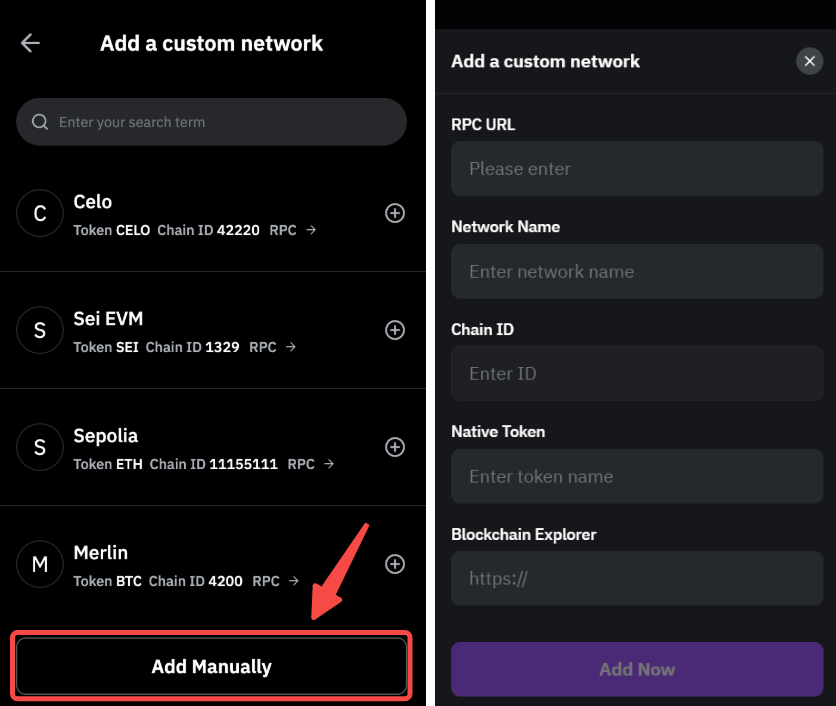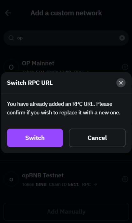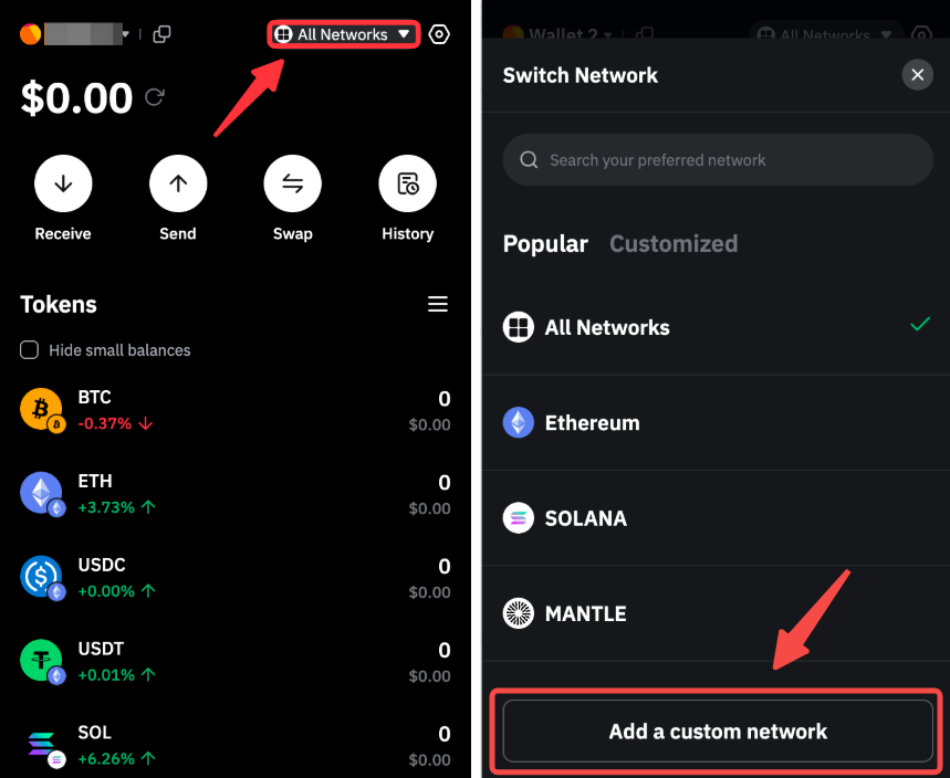 — 如果您要添加的网络已存在于 Bybit Wallet 中,则无法将其重新添加为自定义钱包。