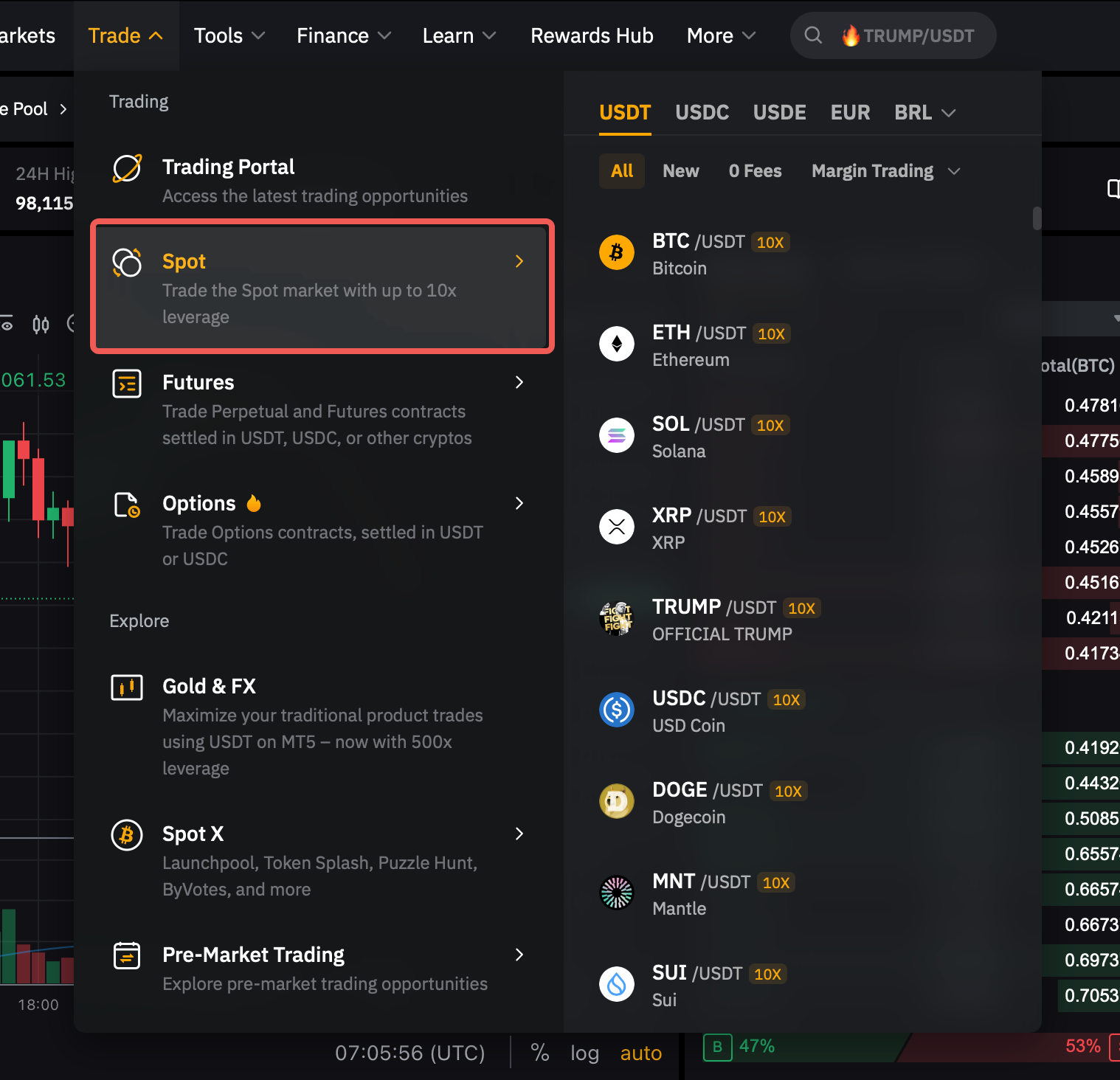 第 1 步:登录账户,点击顶部导航栏中的交易 → 现货,进入现货交易页面。