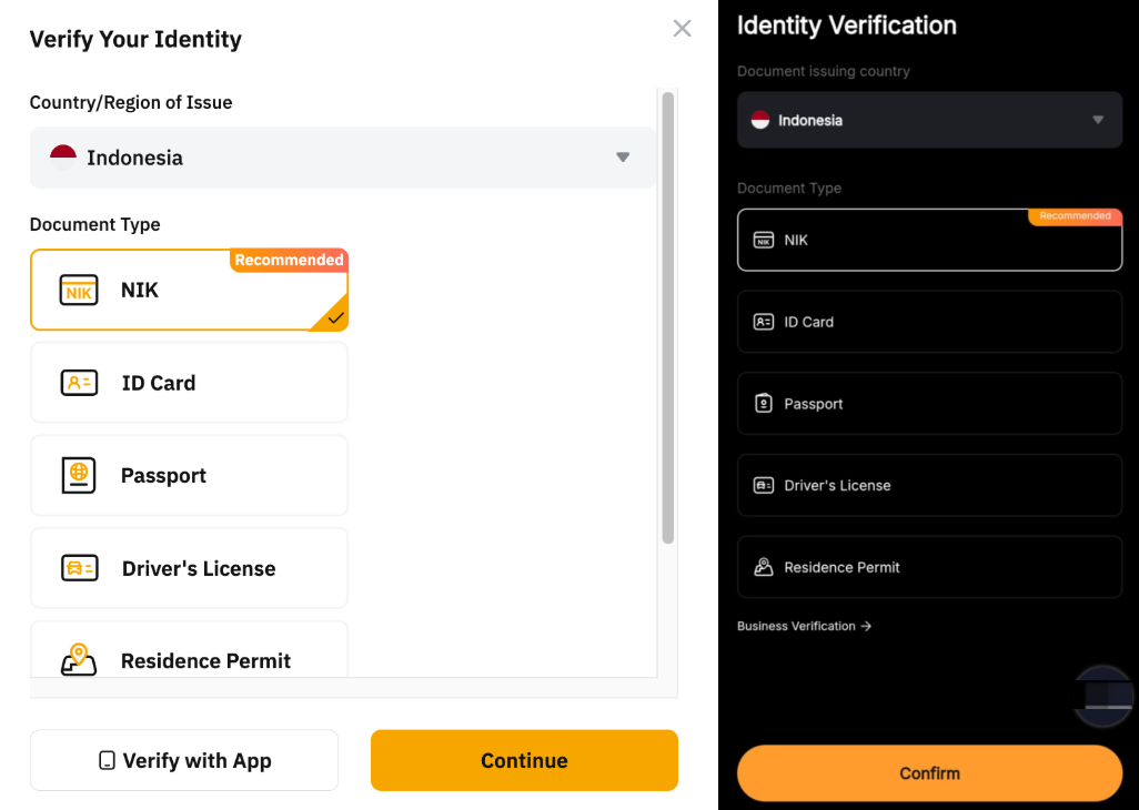 印度尼西亚居民可以使用本地证件类型完成身份认证:Nomor Induk Kependudukan(NIK)