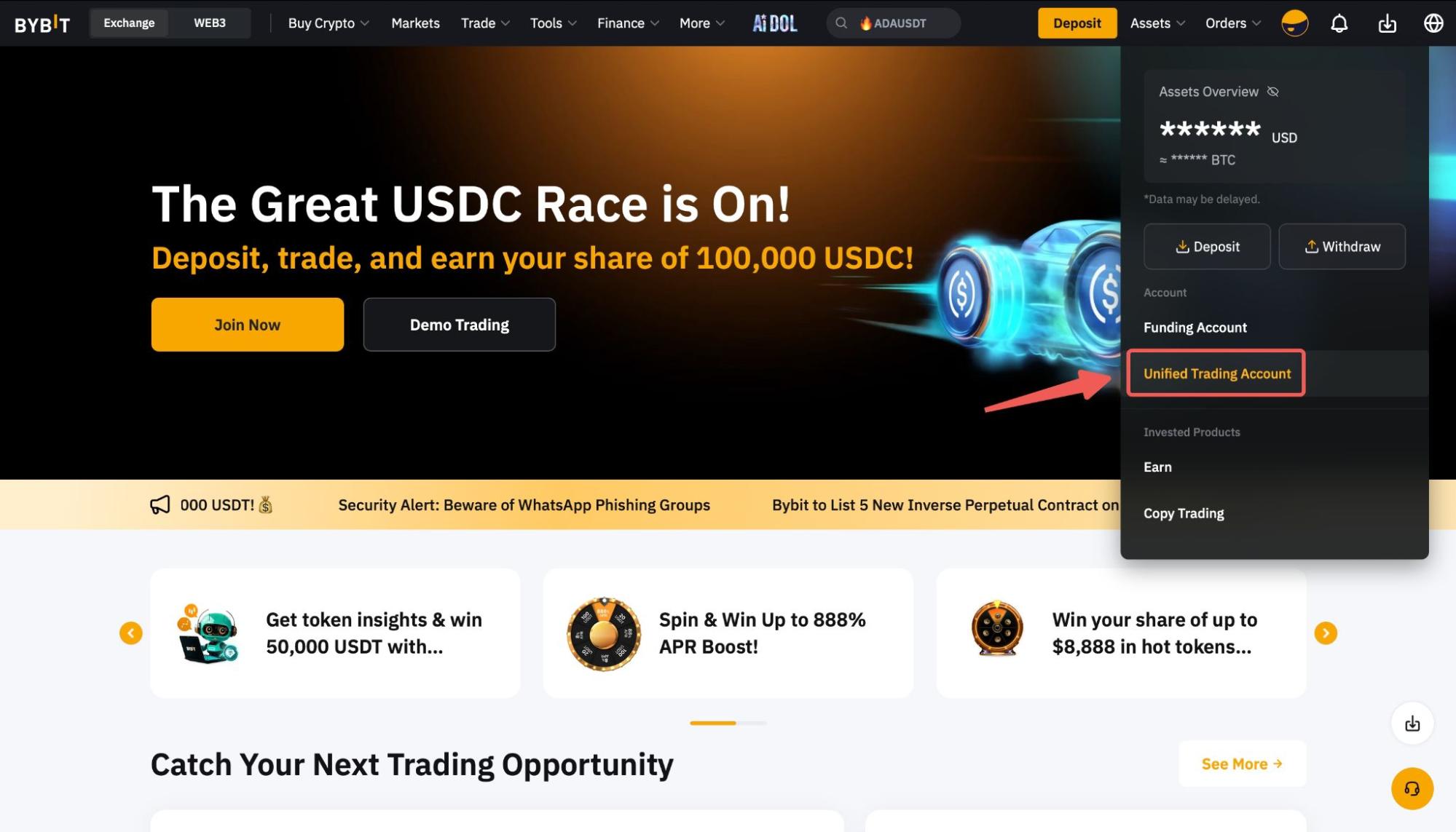 第 1 步:点选资产→统一交易帐户,进入统一交易资产页面。