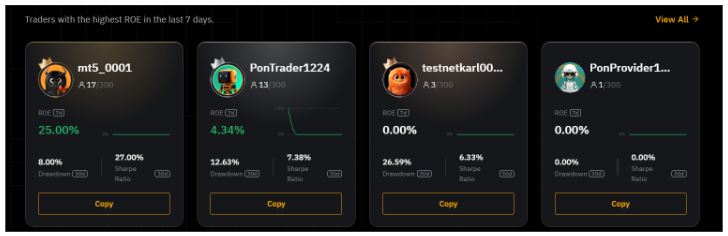 在此窗口中,您还可以查看交易达人的表现和分润比例。分润比例根据交易达人的等级而异。如果分润比例为 10%,则意味着跟单用户需要将其在对交易达人进行跟单时所赚的累计净收益的 10% 分给相应的交易达人。