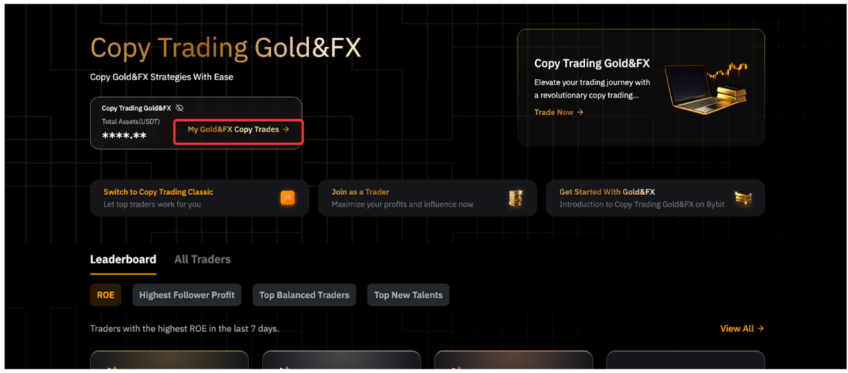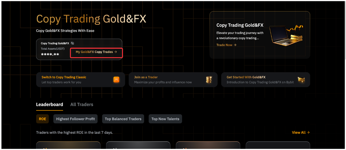 第 1 步:点击交易达人展示页面左上角的我的TradFi跟单,进入跟单用户中心。