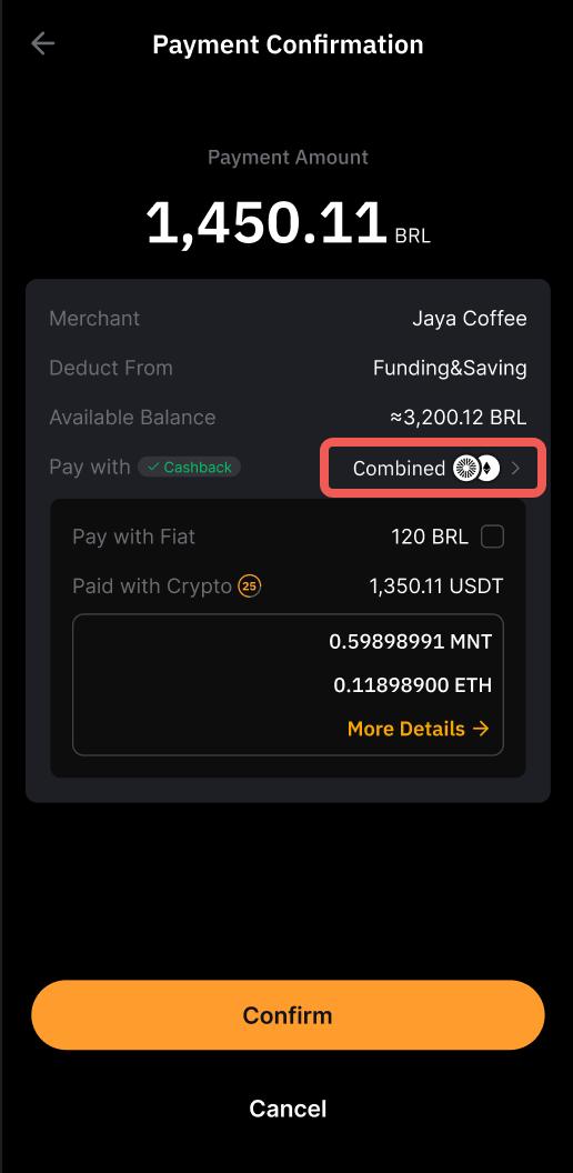 • If the Combined button is enabled and your Funding account has insufficient USDT, funds from your Earn account will be used based on your set payment priority.