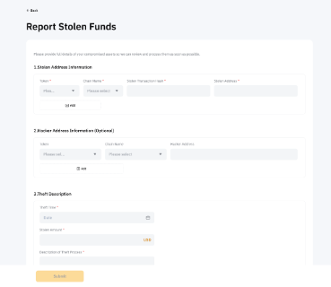 第 3 步(仅限 VIP 用户):提供被盗资产的完整详情,包括:被盗资产类型与金额、黑客地址(如有)、盗窃事件经过详述,以及您的最新联系方式。