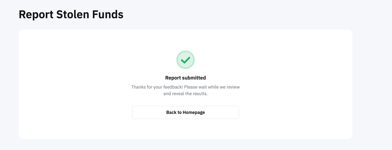 第 2 步:举报资金被盗页面确认相关详情。