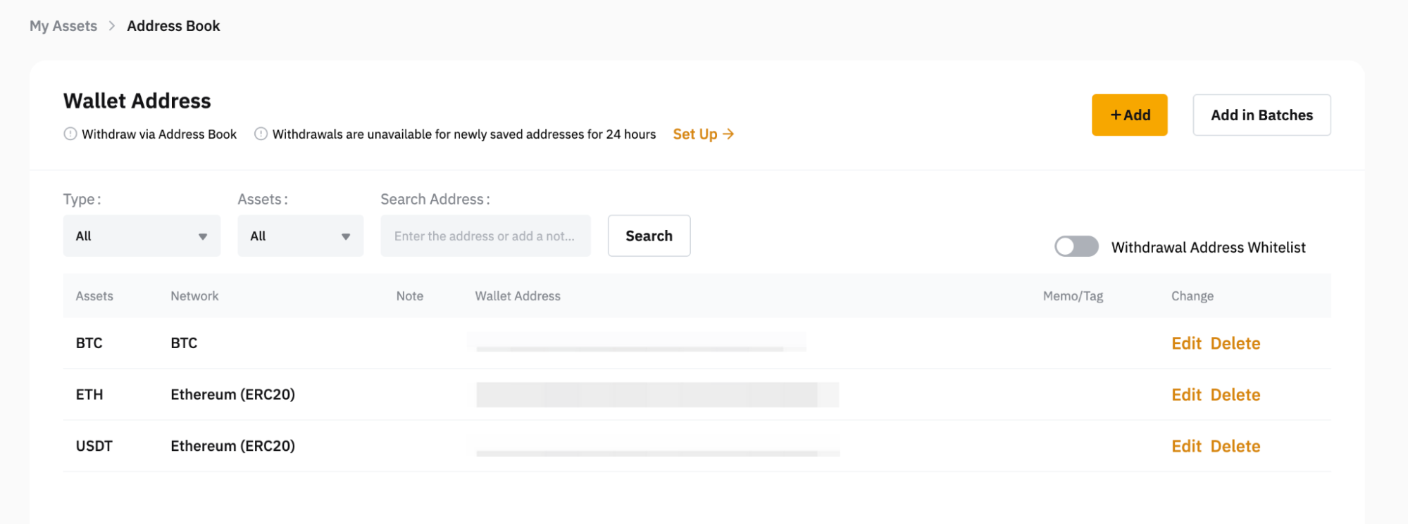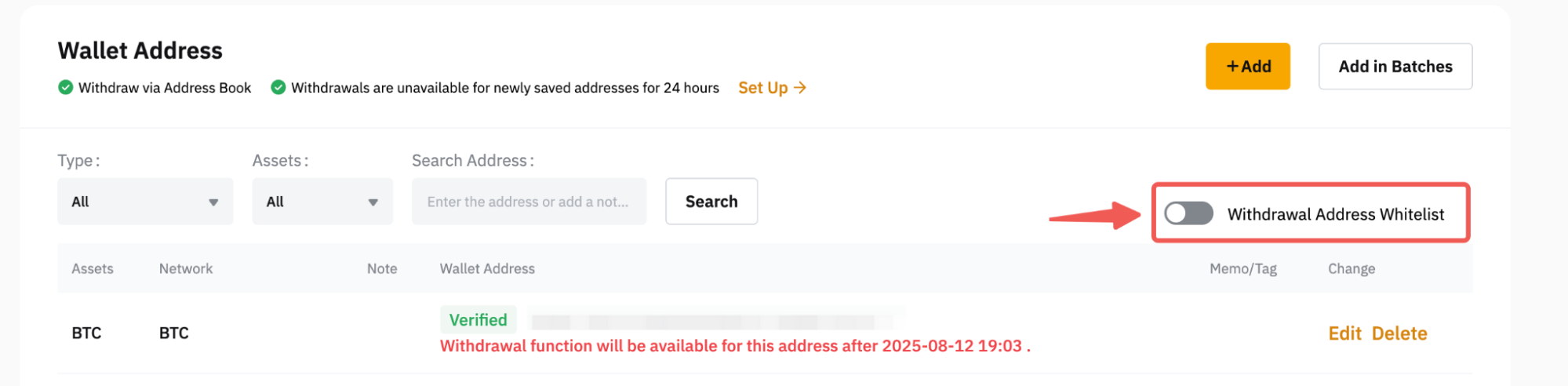 有关如何管理提币地址簿的更多信息,请参阅本文。