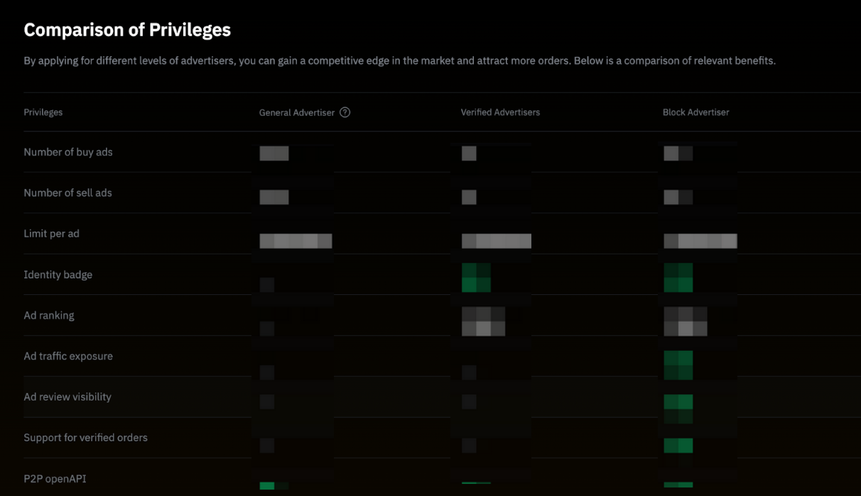 根据您验证的广告方级别,在您的头像和个人资料页面上显示其他徽标,以便通知 P2P 用户您的验证状态。